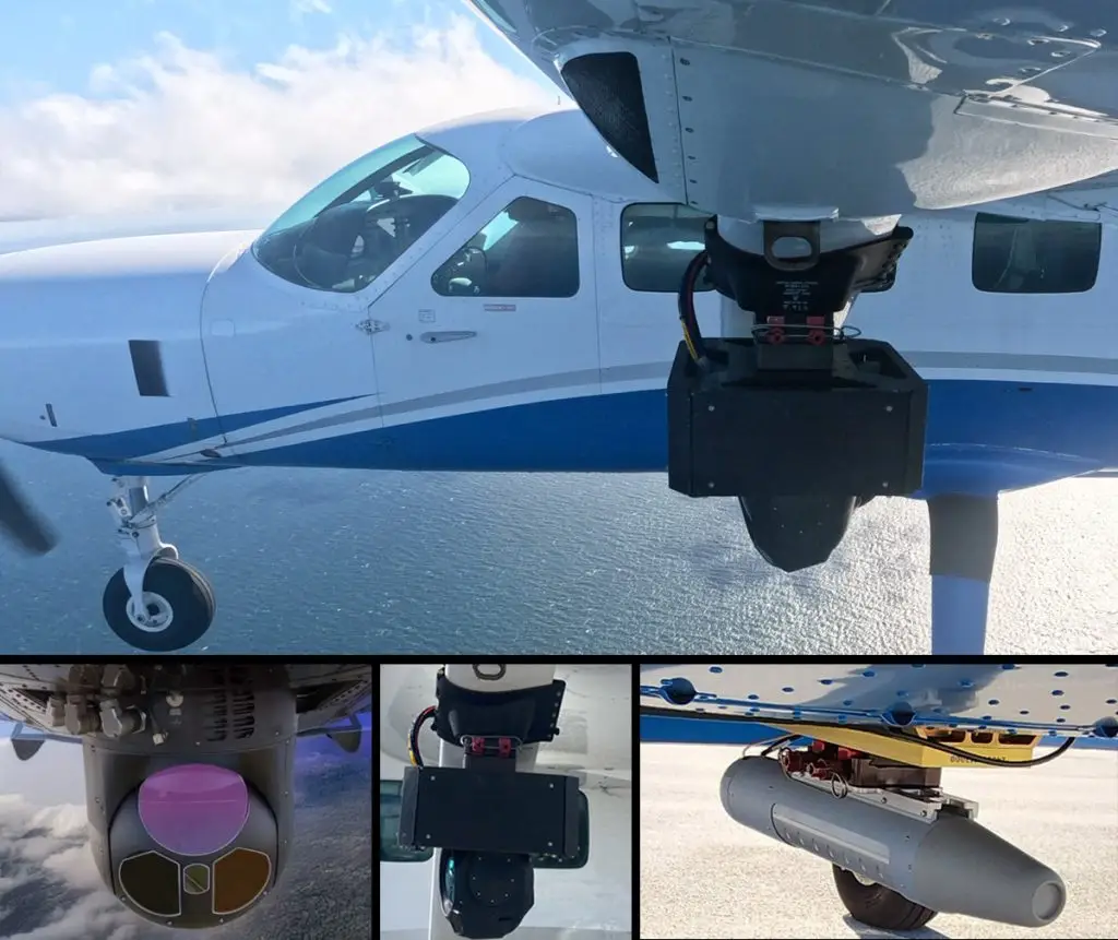 Equipment tested on AIRTEC platforms includes a Hyperspectral Optical Radar(HSOR) – an autonomous, real time, wide area, optical airborne search sensor capable of detecting and classifying all contacts and tracking all targets during day or night operations in degraded visual conditions in sea and land operations. These sensors have 30X the coverage over existing sensors. Other smart/AI sensors tested help increase situational awareness and reduce operator burden by automating the labor-intensive task of searching for small objects of interest in vast and challenging environments. Equipped with the latest in multispectral sensor technology and powered by sophisticated AI and on-board processing, these sensors scan search areas and alert operators, or cue networked devices with image chips and geospatial intelligence. AIRTEC platforms have also been used to test a camera with wide area surveillance capability and onboard GPS/INS for accurate, real-time vehicle and target location, HD digital video, superior geolocation, embedded video processing, onboard maritime AI for wide area boat detection, and a multi-mode, multi-domain SAR/MTI radar.
